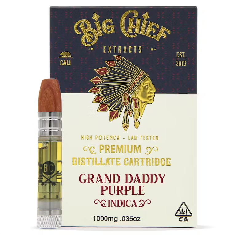 Big Chief's 510 Cartridge - Indica - Grand Daddy Purple (1g) offers an exceptional experience with Napalm OG, a potent indica-dominant strain that awakens your senses with bold herbal pine notes. As the name suggests, this strain is powerful enough to challenge even the most seasoned smokers. Its spicy, peppery, and lemon kushy aroma and flavor create an invigorating sensory experience while delivering a deep, euphoric stone. Expect to feel focused, happy, and profoundly relaxed as you indulge. With tantalizing hints of grape, berry, and spicy/herbal nuances, this cartridge promises unparalleled satisfaction for cannabis connoisseurs.