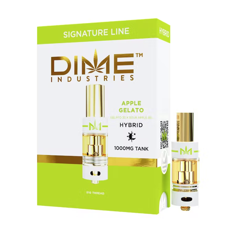 Introducing the DIME - 510 Cartridge - Signature - Hybrid - Apple Gelato (1g), a delightful fusion that evokes memories of apple pie and your favorite gelato dessert. Crafted with precision, our natural, cannabis-derived terpene blends are tailored to provide a unique healing experience for each strain. Every cartridge is meticulously hand-filled by our dedicated production team to ensure consistency and quality. Following this, they undergo a 7-day steeping cycle to guarantee the smoothest hit possible. Proudly licensed by the state of California, all materials used in our products are tracked from seed to sale through trusted California growers and distributors. Experience the exceptional taste and therapeutic benefits of Dime's premium cartridges today.
