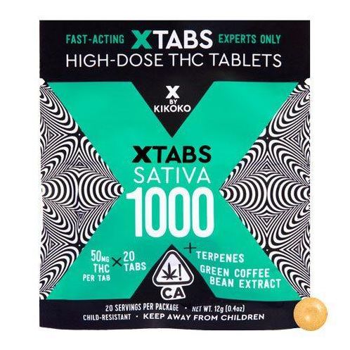Kikoko XTABS Sativa 20pk Tablets (1000 mg) offer a potent and invigorating experience with 50mg THC per serving. Infused with aromatic pinene, reminiscent of gin-like juniper berries, and bright, citrusy limonene known for its anti-inflammatory properties that help alleviate anxiety and stress. These tablets also feature green coffee bean extract, an antioxidant powerhouse that provides a healthful, uplifting boost. Packaged in eco-friendly pouches made from 45% post-consumer recycled materials, these edibles deliver both potency and sustainability. Enjoy the stimulating effects of this expertly crafted sativa blend from Kikoko.
