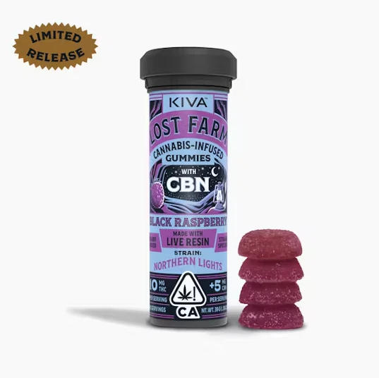 Kiva - Lost Farms - Indica - 2:1 Black Raspberry Northern Lights - 10pk - Live Resin Gummies - (100mg THC/50mg CBN)