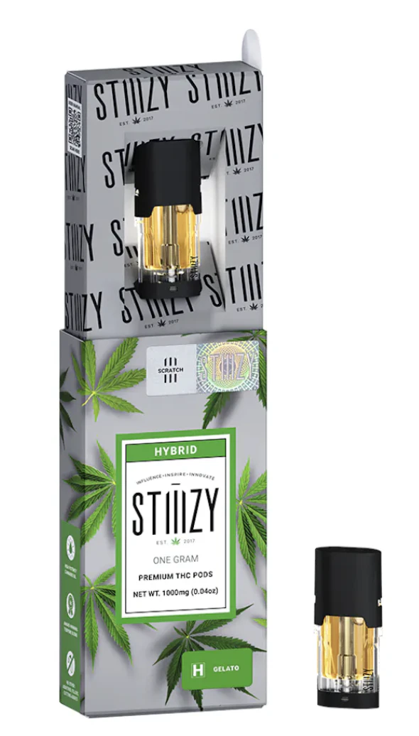 Stiiizy - Full Gram Pod - Hybrid - Gelato (1g) is a premium cannabis cartridge from the renowned brand Stiiizy. This indica-dominant hybrid is a cross between Thin Mint Girl Scout Cookies and Sunset Sherbet, often referred to by its nickname “Larry Bird” due to its phenotype #33. Gelato is celebrated for its potent effects, making it an ideal choice for those with a high tolerance. It excels in alleviating stress, depression, pain, lack of appetite, and insomnia. This product contains no PG/PEG/VG, MCTs, cuts, or fillers, ensuring a pure and high-quality vaping experience. Whether you're looking to unwind after a long day or need relief from chronic conditions, this heavy-hitting strain delivers unparalleled satisfaction.