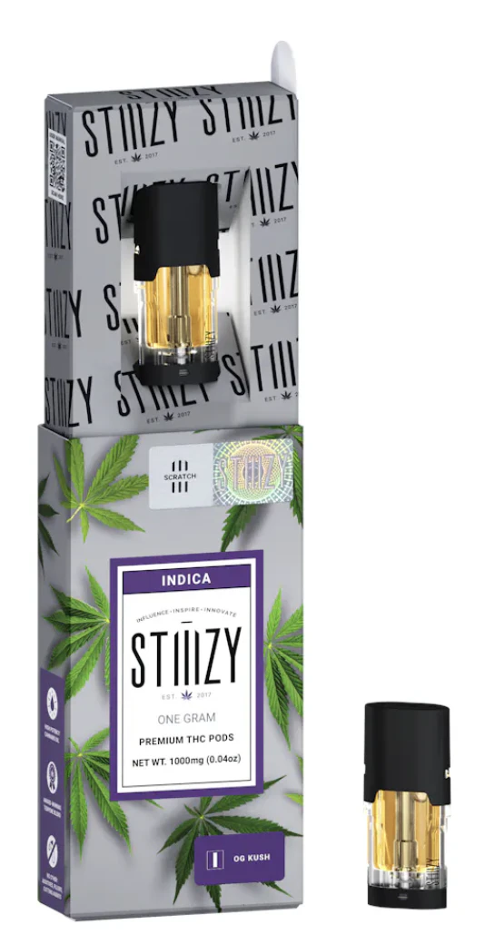 Stiiizy - Full Gram Pod - Indica - OG Kush - Rainbow Candy Flavor (1g) is an ideal choice for patients seeking relief from stress, depression, pain, insomnia, and lack of appetite while savoring the delightful taste of rainbow candy. Stiiizy crafts its distillates through a meticulous solvent-free distillation process, utilizing only top-shelf quality concentrates and cannabis-derived terpenes. This ensures unparalleled purity in every cartridge. Lab-tested to guarantee excellence, these cannabis-derived terpenes contain no PG/PEG/VG, no MCTs, and are free from cuts, fillers, and solvents. Experience the therapeutic benefits combined with superior flavor in this premium product from the renowned brand Stiiizy.