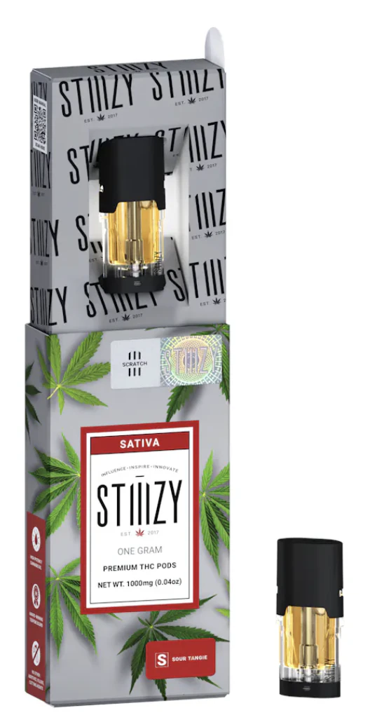 Stiiizy - Full Gram Pod - Sativa - Sour Tangie (1g) is a premium cartridge that masterfully blends the best of its parent strains, Sour Diesel and Tangie. This sativa cross delivers an invigorating buzz accompanied by robust citrus notes, making it an ideal choice for enhancing your mood and alleviating pain. Perfect for tackling stress, depression, pain, and fatigue, this strain offers a well-rounded experience for both recreational and medicinal users. Stiiizy ensures the highest quality by avoiding PG/PEG/VG, MCTs, cuts or fillers, and solvents in their products. Enjoy a pure and potent vaping experience with this exceptional Sour Tangie cartridge from Stiiizy.