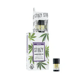 Stiiizy - Half Gram Pod - Indica - Hardcore OG (0.5g) is a premium cannabis product that combines the potent genetics of Big Bud and DJ Short Blueberry. This indica-dominant strain delivers a powerful, sedating experience that envelops the body, effectively alleviating stress, pain, and other ailments with its high THC content. Ideal for those seeking relief from stress, depression, pain, fatigue, and insomnia, this cartridge offers a clean and pure vaping experience. Stiiizy ensures quality by avoiding PG/PEG/VG, MCTs, cuts or fillers, and solvents in their products. Enjoy the therapeutic benefits of Hardcore OG with confidence in its purity and potency.