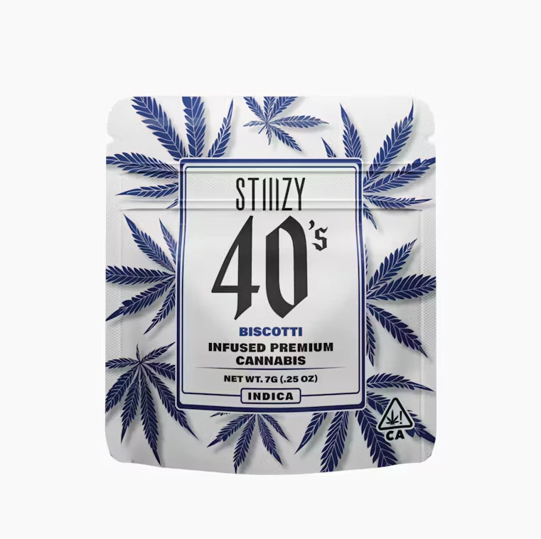 Elevate your flower experience with STIIIZY's Infused 40's - Indica - Watermelon Z (7g). This premium product from the renowned Stiiizy brand combines top-tier cannabis flower infused with THC-A Diamonds, delivering an exceptional potency of 40% total cannabinoids. The Watermelon Z strain delights the senses with its sweet citrus and berry flavors, offering a euphoric and relaxing high that uplifts your mood while grounding your body. Perfect for rolling your own potent joints, STIIIZY's Infused 40's promise unmatched potency and endless possibilities for an elevated cannabis experience.