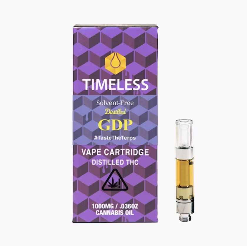 Experience the sweet and relaxing effects of Timeless - 510 Cartridge - Indica - Grand Daddy Purp (1g). This popular strain, often referred to as GDP, is cherished by both novice and seasoned cannabis enthusiasts for its unique blend of flavor and soothing effects. Known for its delightful sweetness, Granddaddy Purple delivers a calming experience that makes it a go-to choice for unwinding after a long day. Whether you're new to cannabis or a connoisseur, this cartridge offers a consistent and enjoyable experience every time. Indulge in the rich taste and tranquil vibes of Timeless's Grand Daddy Purp cartridge and elevate your relaxation routine.