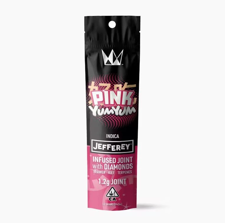 West Coast Cure's Pink Yum Yum infused joint is a flavor-packed delight! This 1.2g Jefferey pre-roll blends whole nug flower, live resin diamonds, and high-end kief for a symphony of flavors and effects. Perfect for those seeking an elevated experience, this indica offers a rollercoaster ride through your imagination's twisted corridors. Expect a heady adventure where laughter is mandatory and introspective thoughts are inevitable. Add to cart now and get ready for an unparalleled journey with every puff.